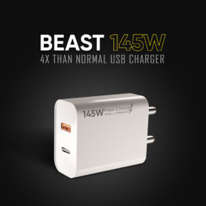 Vismac BEAST 145W Multi-Port Wall Charger | USB-C + USB-A | PD Fast Charge | Laptop & Phone Compatible